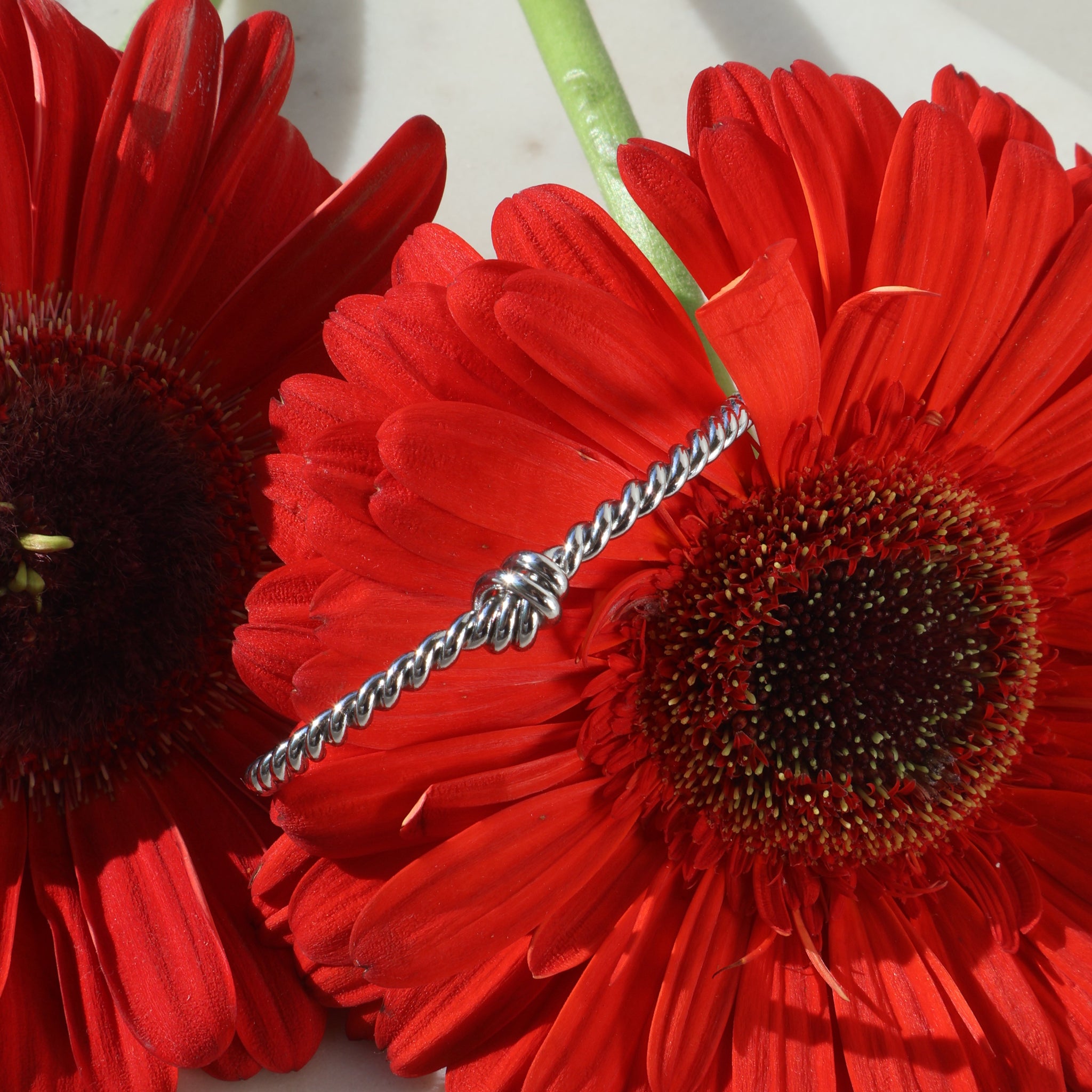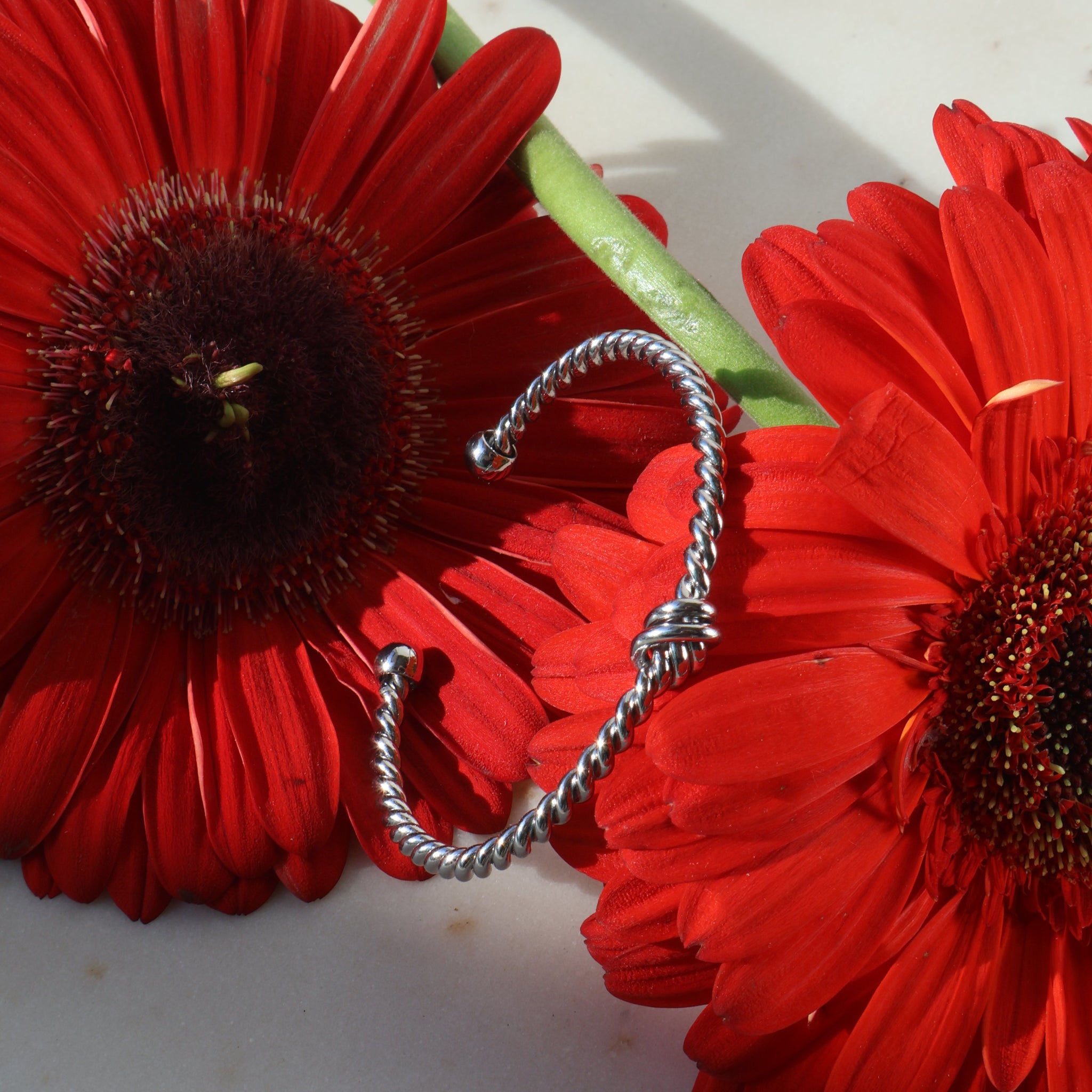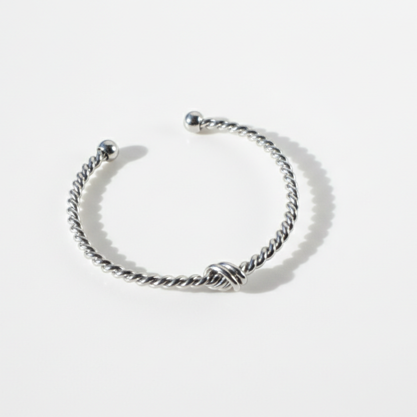 Pulsera Rígida Trenzada con Nudo en Rodio
